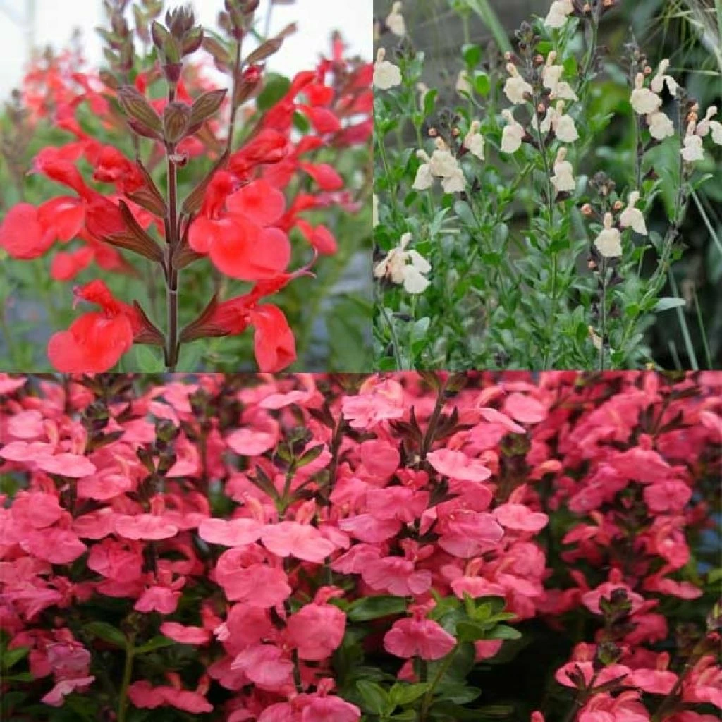 Les sauges sont des plantes qui offrent une floraison décorative, généralement en épis, et un feuillage aromatique. La plus connue est la sauge officinale, Salvia officinalis, appréciée pour ses nombreux bienfaits. Elle s’utilise en cuisine pour parfumer les plats, mais aussi en tisane ou infusion. Il existe également une multitude de variétés de sauges ornementales dont les couleurs se déclinent dans de très belles nuances : on apprécie les fleurs bleu – violet de Salvia nemorosa pour leur intensité, et les fleurs rouges de Salvia microphylla pour leur teinte éclatante… sans oublier les autres variétés aux tons blancs, roses ou jaunes… Le choix est large, et vous trouverez aisément des floraisons qui vous plaisent. Les sauges sont également de très bonnes plantes mellifères, qui attirent les abeilles au jardin !