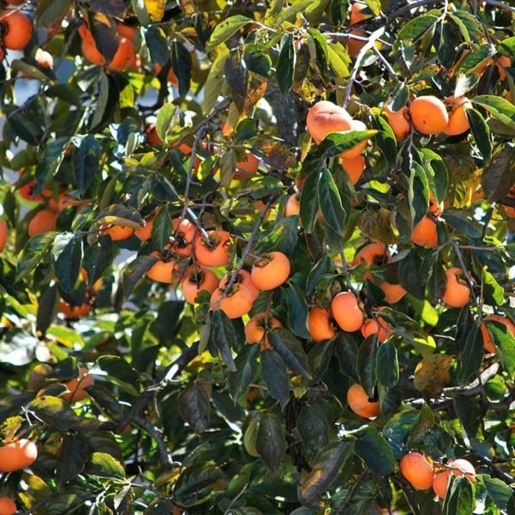 Le kaki pomme Fuyu est une variété autofertile de Diospyros kaki, le Plaqueminier. C’est à la fois un arbre fruitier et un arbre décoratif, donnant dès fin octobre des fruits orangés de la taille d’une pomme, sans pépins, à chair sucrée et riche en vitamine C. Le kaki pomme à la particularité d’être non astringent et peut être consommé ferme, directement après récolte. Variété productive dont l’aspect ornemental se trouve être particulièrement attrayant en automne avec son feuillage prenant des teintes rouges très vives.