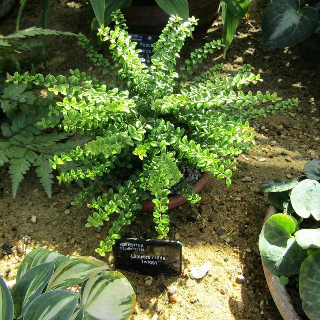 Le Lonicera nitida ‘Twiggy’ est un hybride de chèvrefeuille arbustif appelé aussi chèvrefeuille à feuilles de buis, appartenant à la famille des caprifoliacées. Son parent, le L. nitida, est un arbuste persistant robuste originaire des provinces chinoises du Yunnan et du Sichuan.